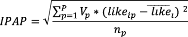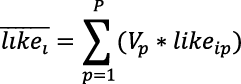 En ella, p es el partido, i hace referencia al individuo encuestado y likeip indica la puntuación de agrado-desagrado asignada a cada partido p por el individuo i. Vp es el porcentaje de votos de cada partido, medido como una proporción con un rango de 0 a 1. Además,