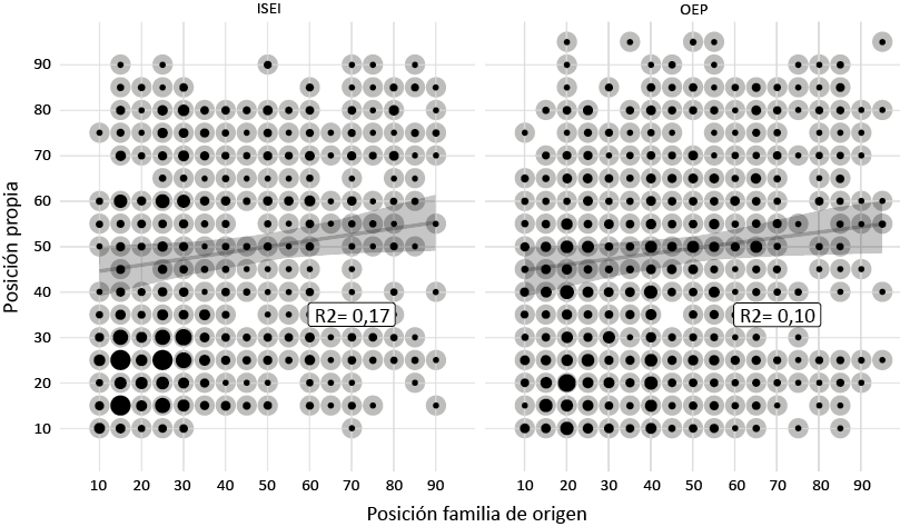 Por su parte, el OEP (Oesch et al., 2024) es también un indicador de escala, pero clasifica las ocupaciones solo en función de su potencial de ingresos medianos, a diferencia del ISEI, que combina educación e ingresos (Oesch et al., 2024).