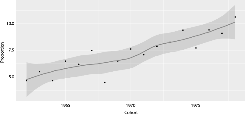 As shown in Figure 1, the percentage of women using assisted reproduction increased from 4 % in cohorts born in the 1960s to 10 % in cohorts born in the late 1970s. This increase can be attributed both to the rise in infertility linked to the delay in the age of entry into motherhood, technological progress in the available procedures and the expansion of coverage by the public health system.