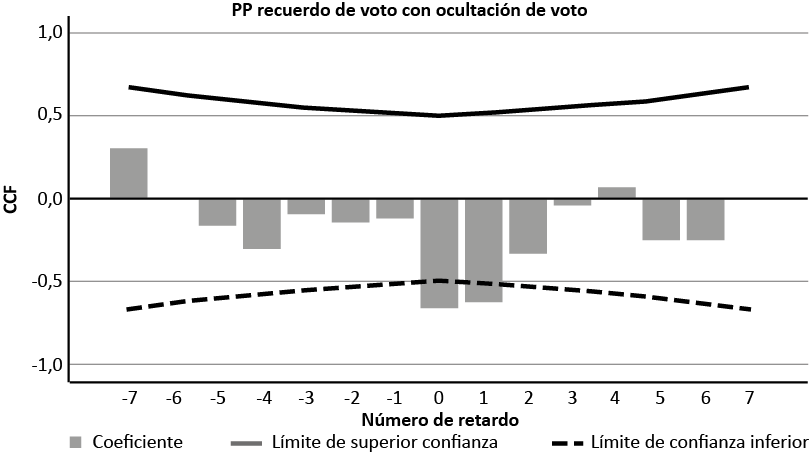 Gráfico 3. Correlación cruzada entre el recuerdo de voto al PP en elecciones generales de julio de 2023